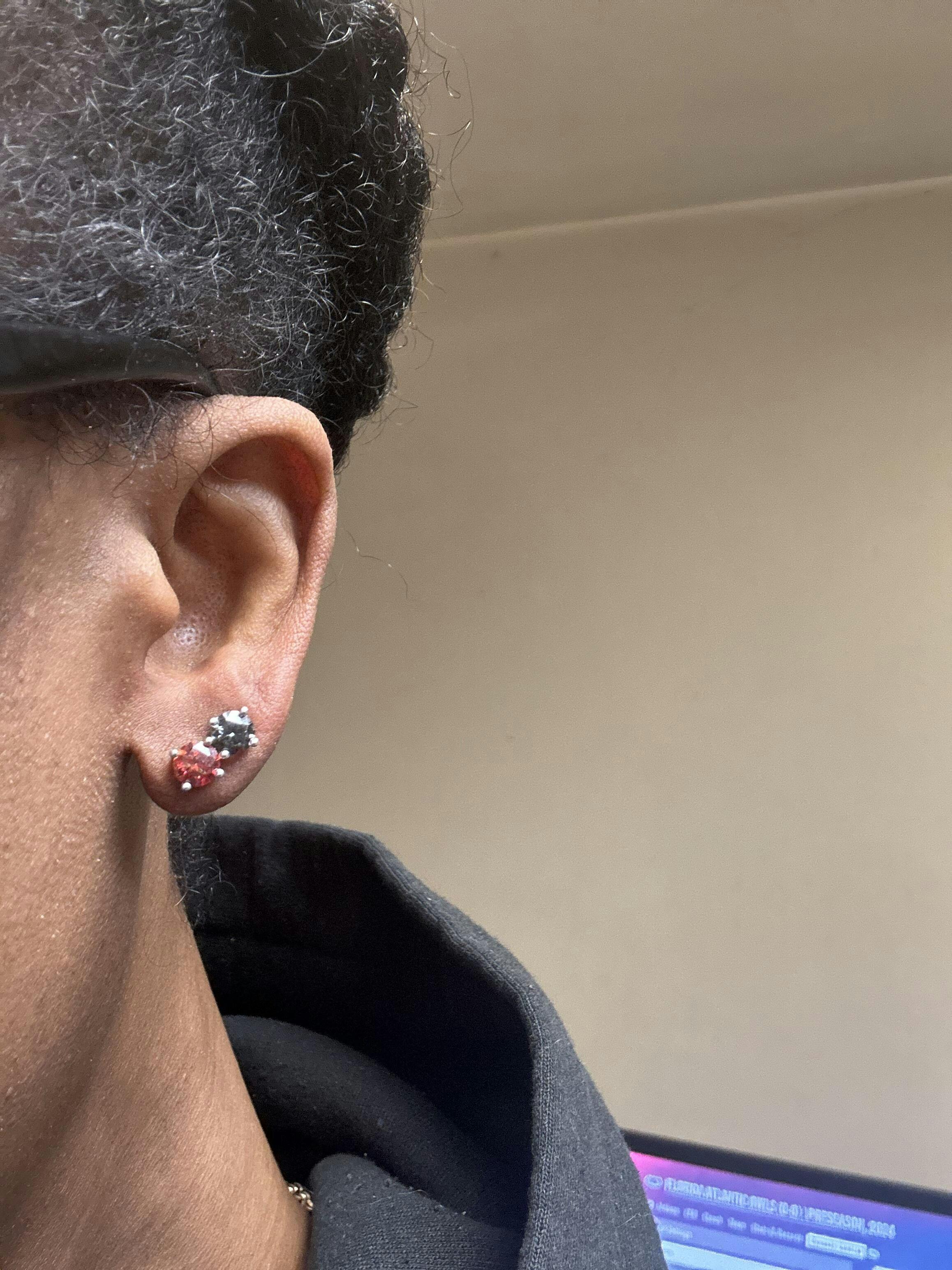 8mm each stoneĀ (2ct EACH stone)Ā - noticeableĀ for a $$$ look for men or women (2.8 grams)