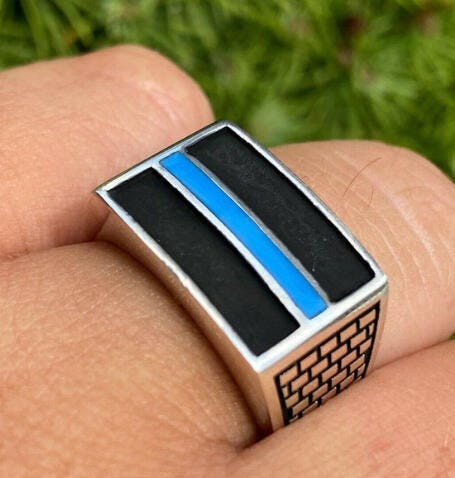 Solid 925 Sterling Silver Ring Blue Lives Matter Thin Blue Line Police Detective