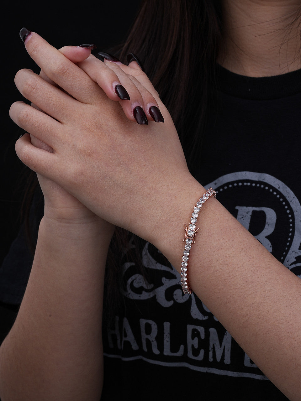 SOLID 925 Sterling Silver Tennis Bracelet ITALY Single Row Heart Shaped Diamond