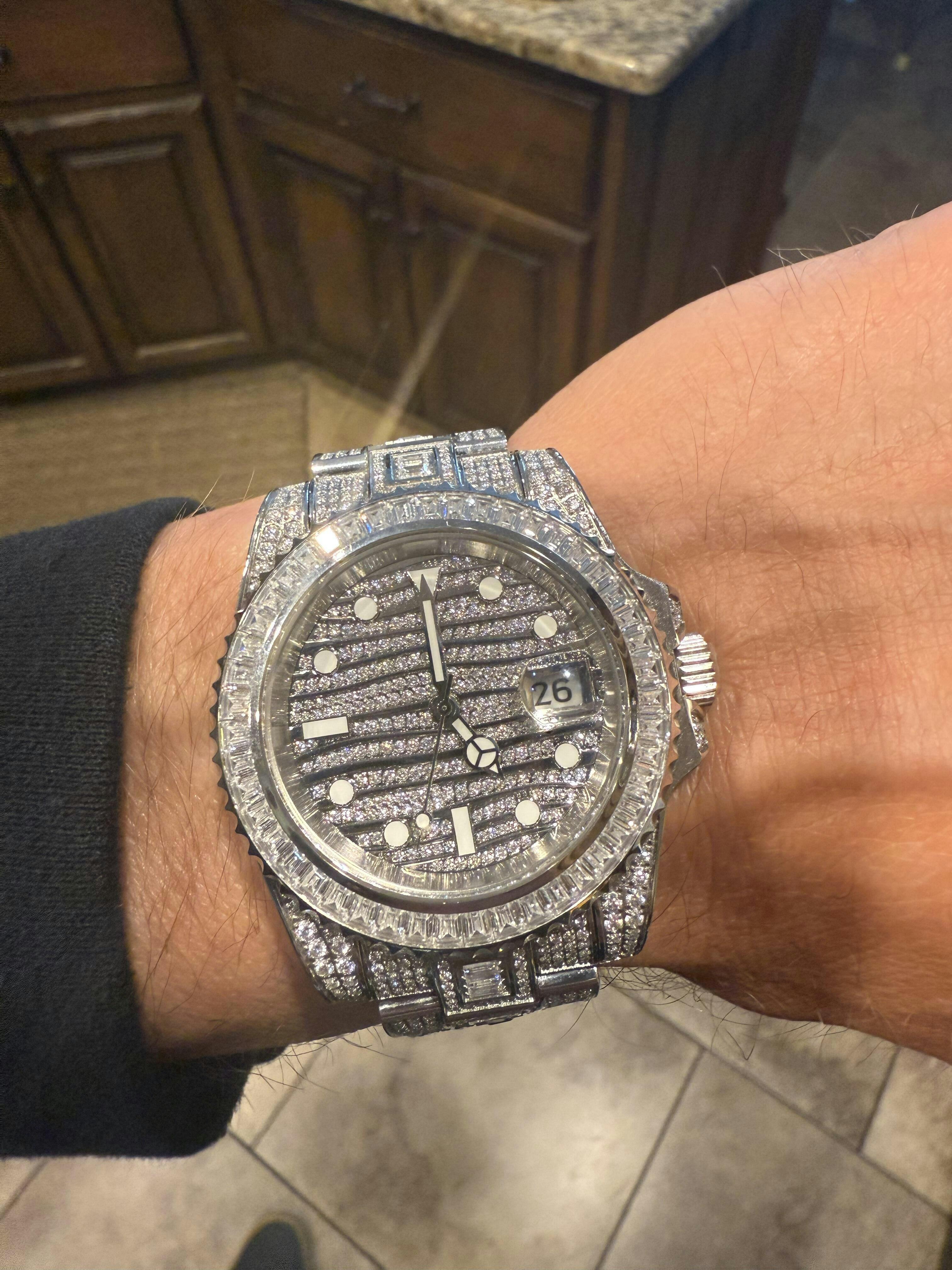 100% legit. No regrets since the first time I opened the box and put it on. Looks and feels of excellent quality. This Watch is 5ATM water resistant, so you don’t have to worry about washing hands, taking a shower and light swimming. I love the premium Japanese automatic movement. Keeps accurate time and is a breeze to operate. Also came with the time and date set correctly for my time zone. This watch blings hard! Pictures don’t do this watch justice. People won’t stop looking at my wrist lol! Took it to my jeweler and of course it passed their diamond tester and it only took a few minutes for them to take links out for the perfect fit. I wear it everyday. This is my second purchase from Harlem Bling with both being 100% satisfaction with the shipping, quality and communication from HB. Will be back for future purchases! Thank you Eddie and Harlem Bling!!!
