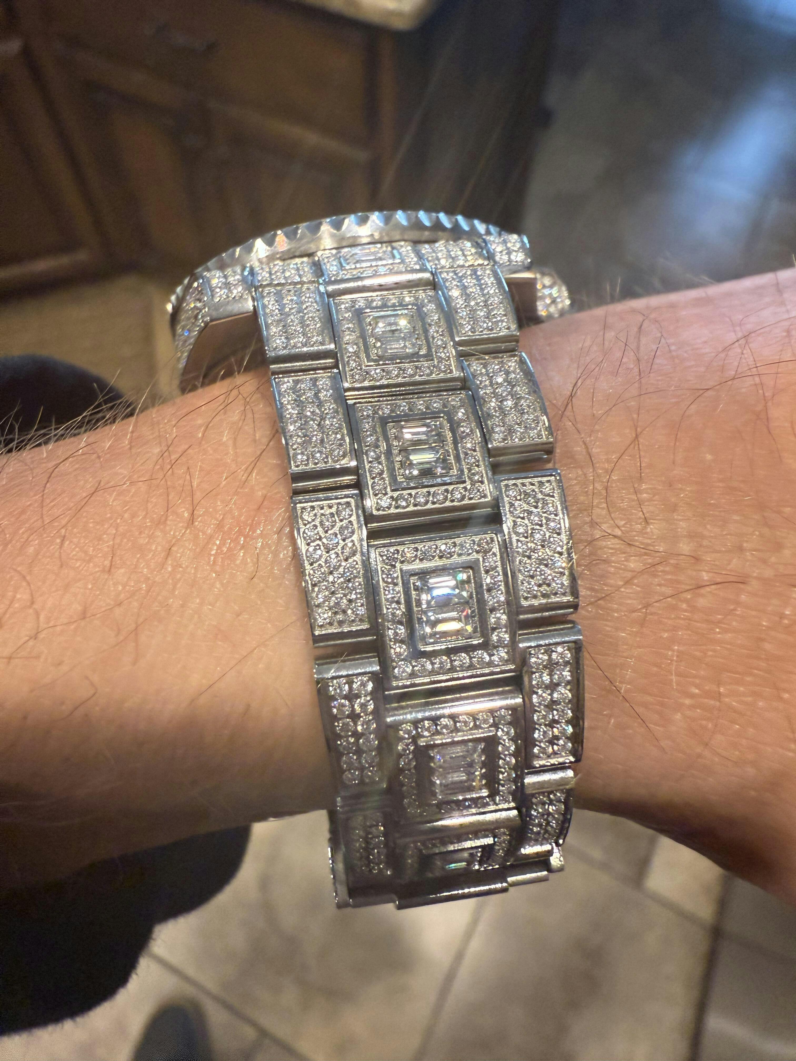 SUMMER 2023 WAVE EDITION Real Baguette MOISSANITE Mens NO ID Presidential Watch Iced 44mm Hip Hop