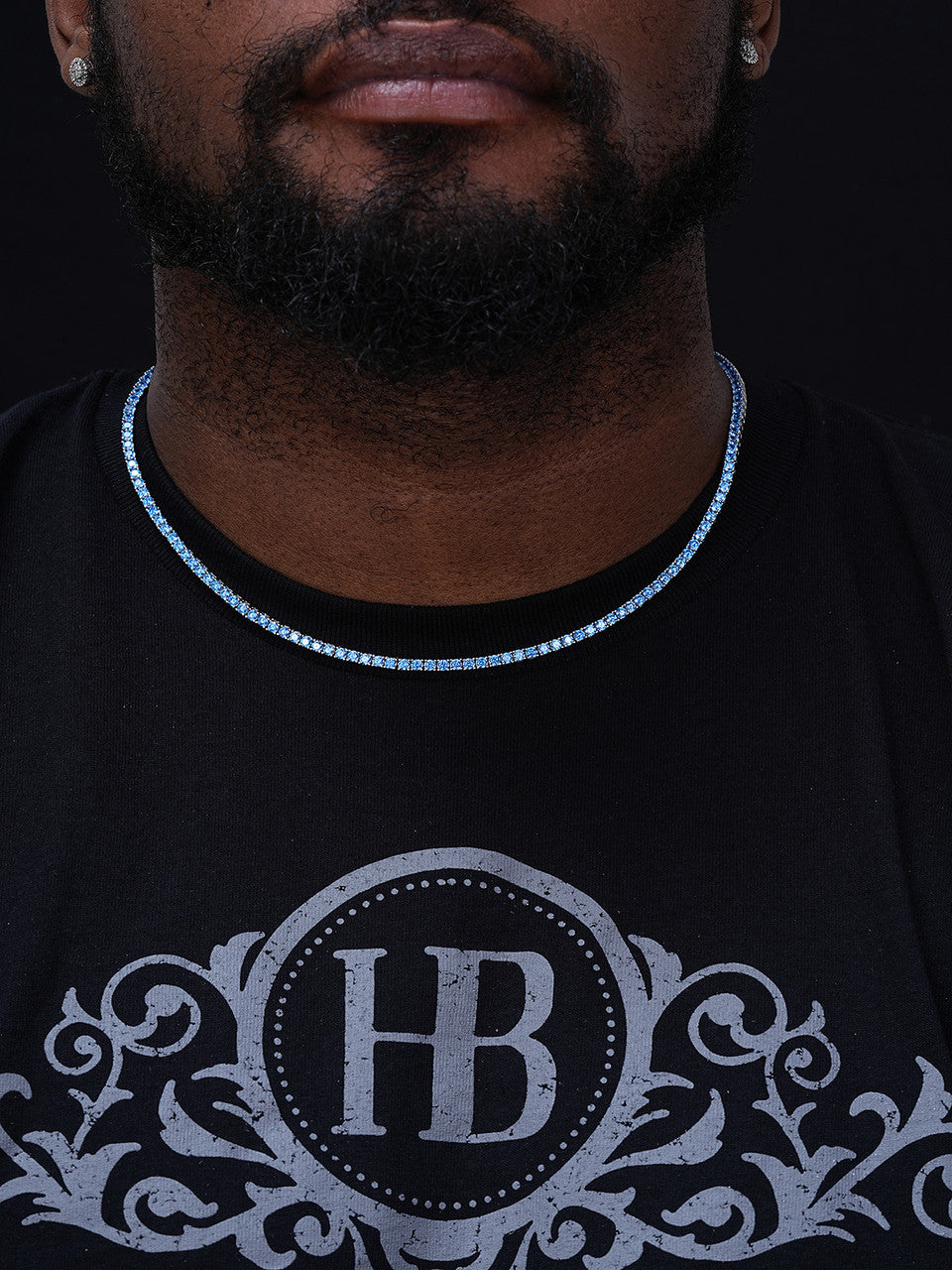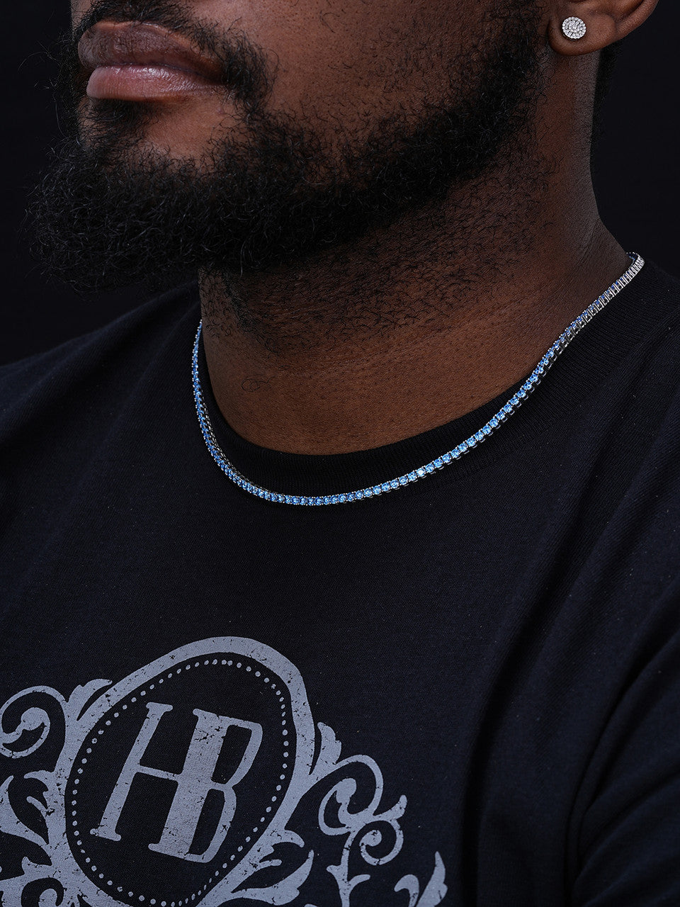 Tennis Chain Necklace Iced Out Blue CZ Stones - 925 Silver - 3mm - 16"-28"