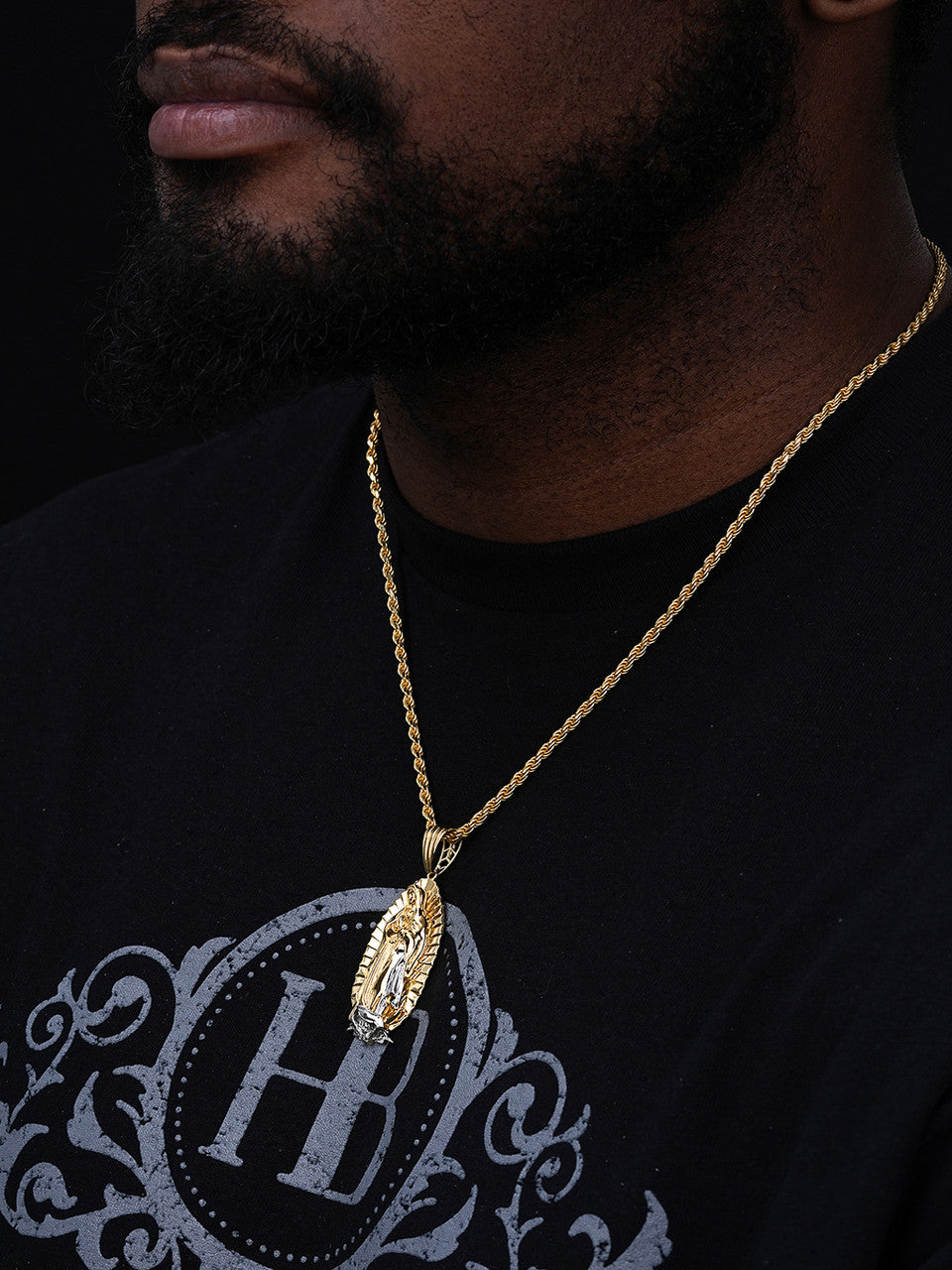 Virgin Mary Guadalupe Pendant - 14k Gold Vermeil 925 Silver - CZ Stones - Medium 2.5"