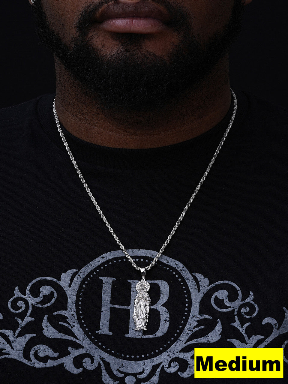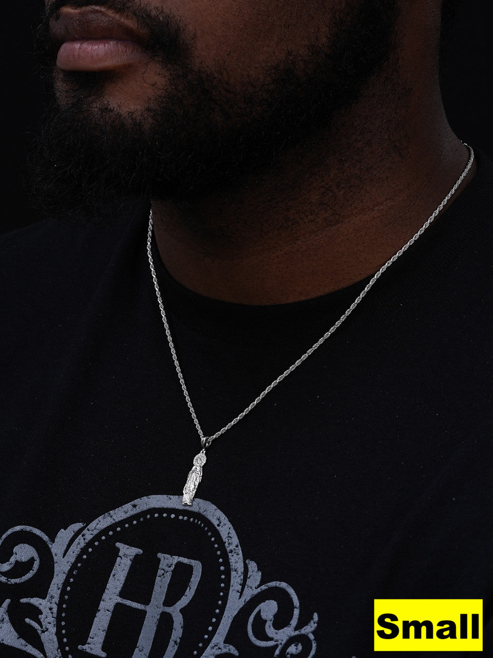 Virgin Mary Guadalupe Pendant - 925 Silver - CZ Stones - 3 Sizes 1"-3"