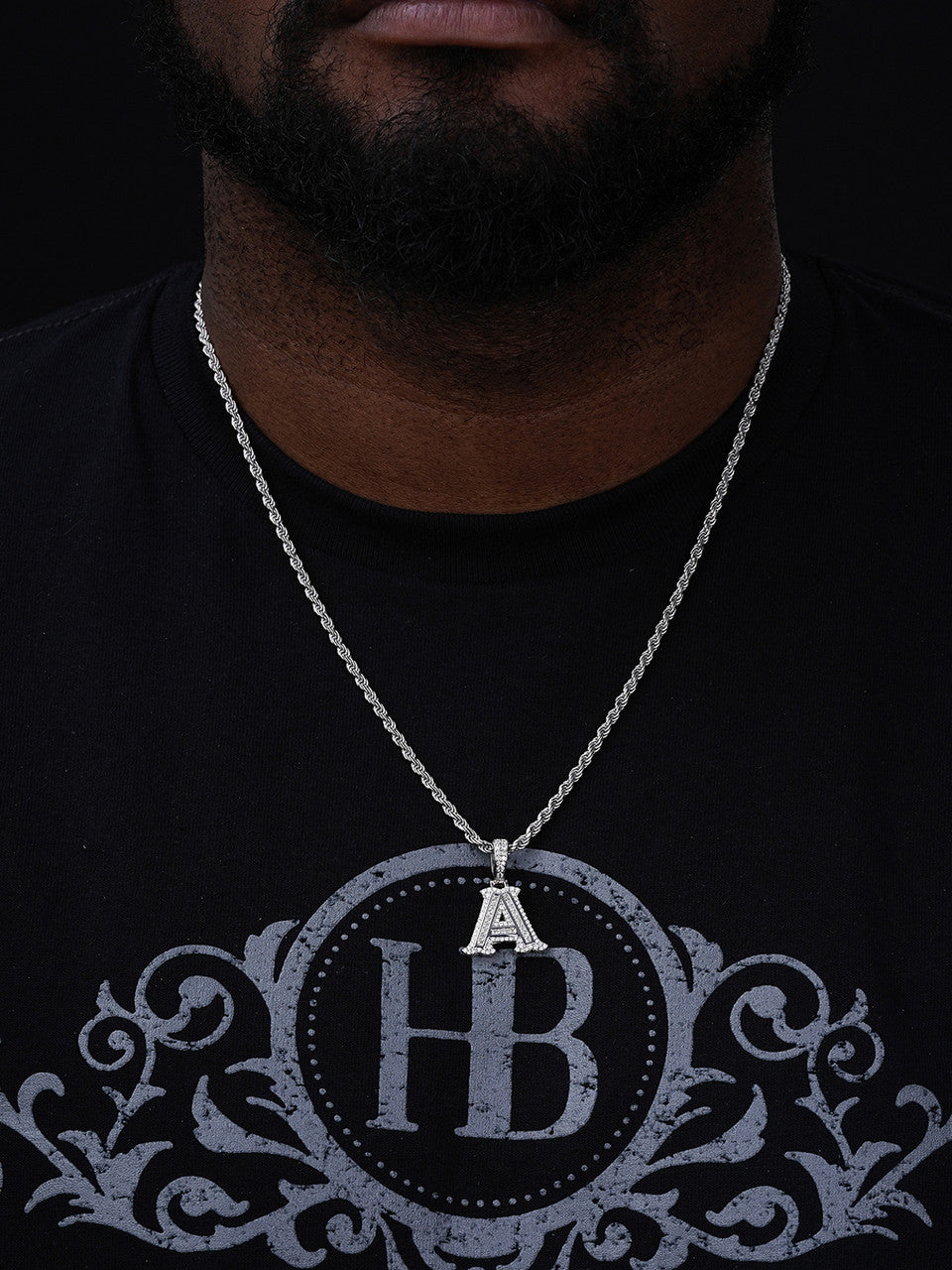 MOISSANITE A - Z Initials Gothic Letter Iced Out Pendant - 14k Yellow Gold Vermeil Or 925 Silver - Small 1.25"