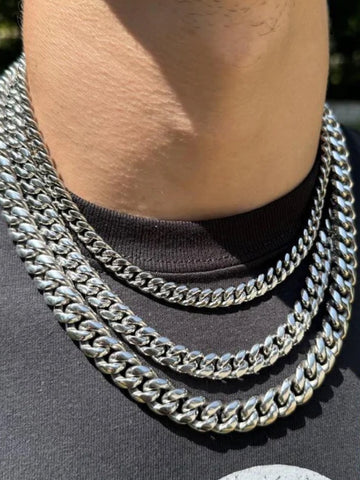 Fits chains up to 8mm thick...our favorite look is with a 4mm rope or franco chain or 5mm cuban chain