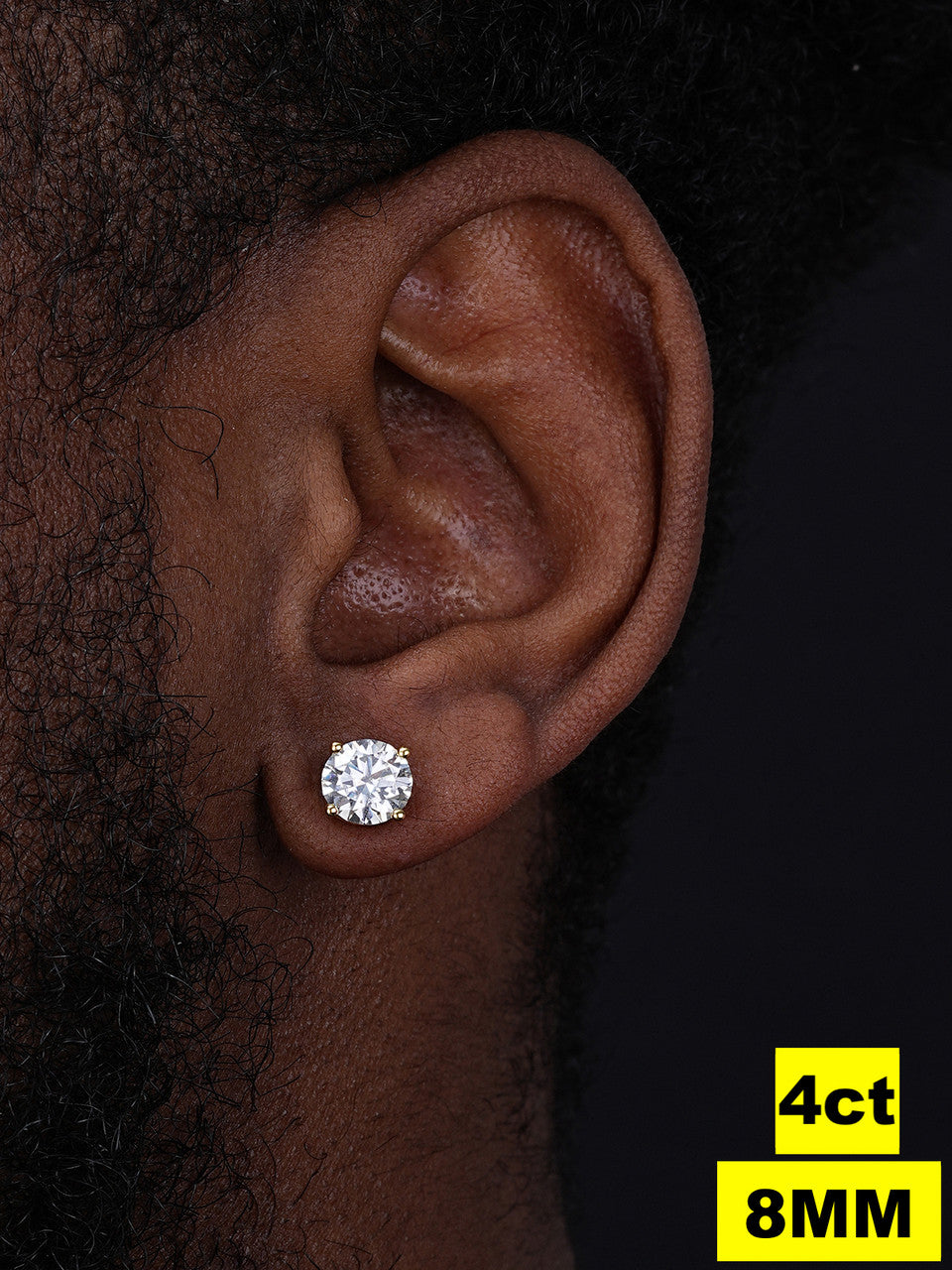 10mm each stone (4ct EACH stone) - noticeable for a $$$ look for men or women for those that love attention (4.2 grams)