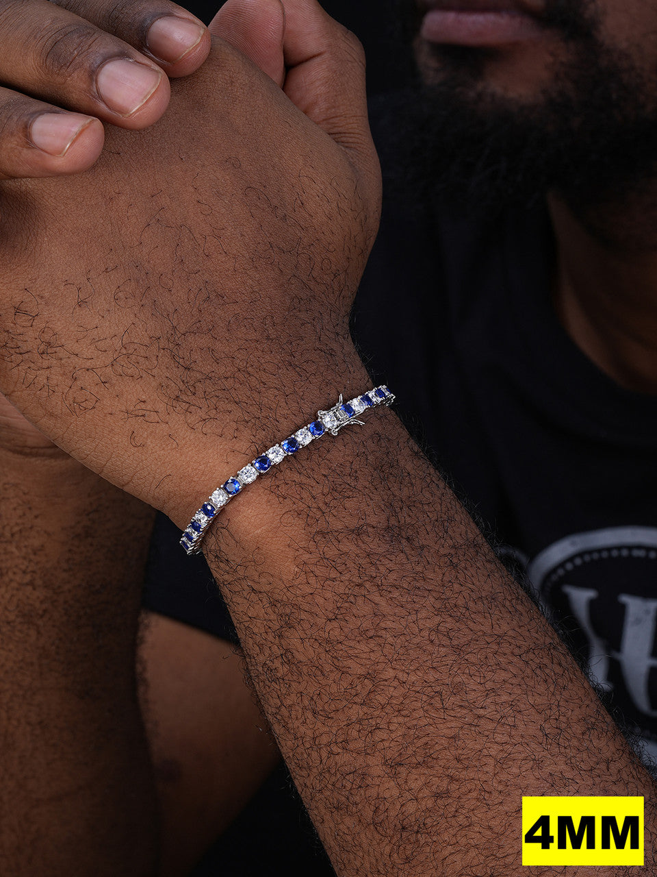 Tennis Bracelet SOLID 925 Sterling Silver Single Row Diamond & Blue Sapphire